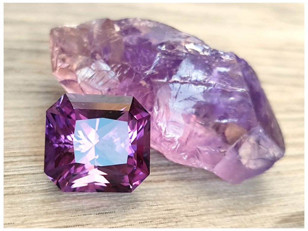 Ametyst 19,26ct; růžovo-fialový drahokam z naleziště Rwanda