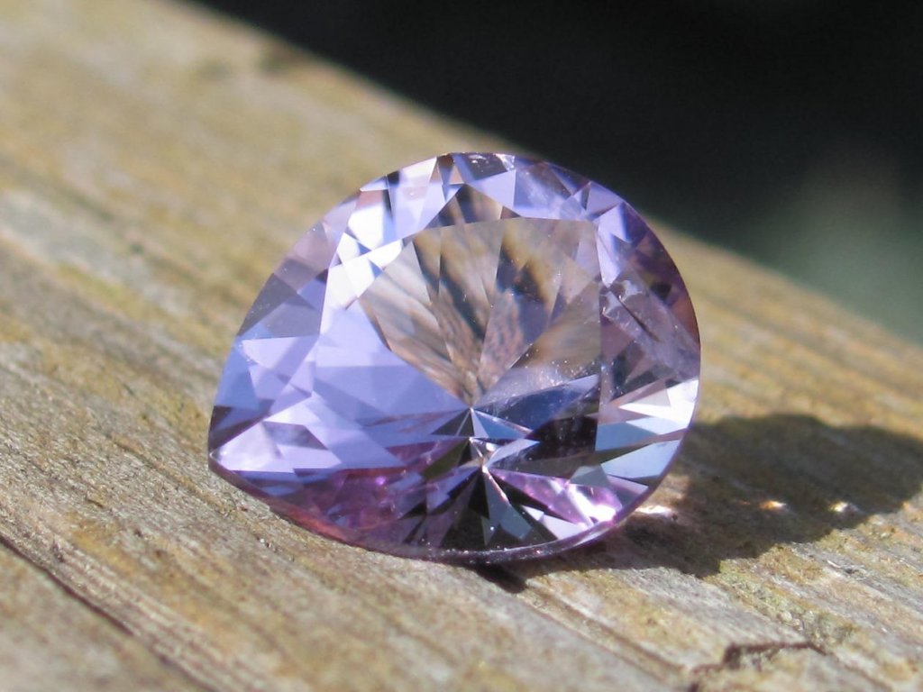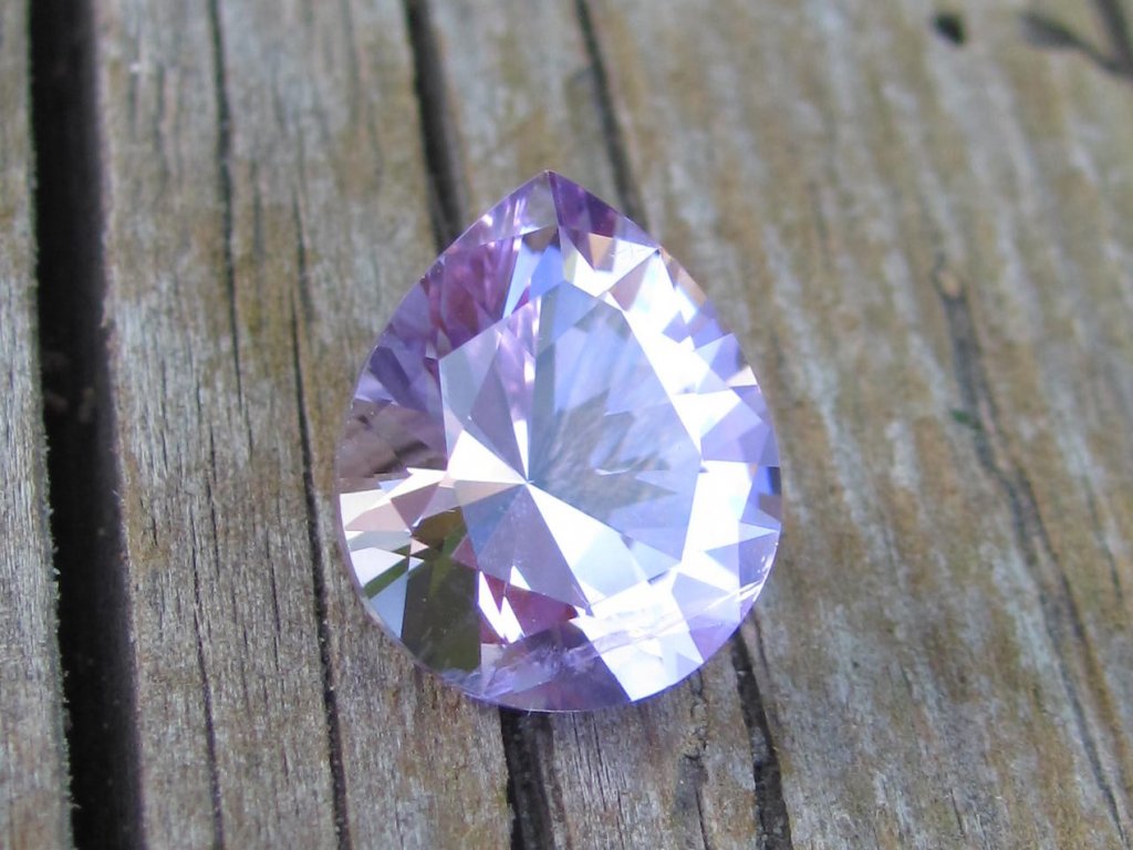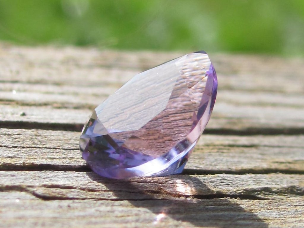 Jemná pastelová růžovo-fialová barva "Rose de France". Broušený ametyst briliantový brus ve tvaru pantloku. Surový kámen drahokamové kvality původem z Bolívie se opracoval, získal tak nový klenotnický rozměr a trvalou hodnotu. Šperkový kámen do prstenu, do přívěsku nebo do náhrdelníku.