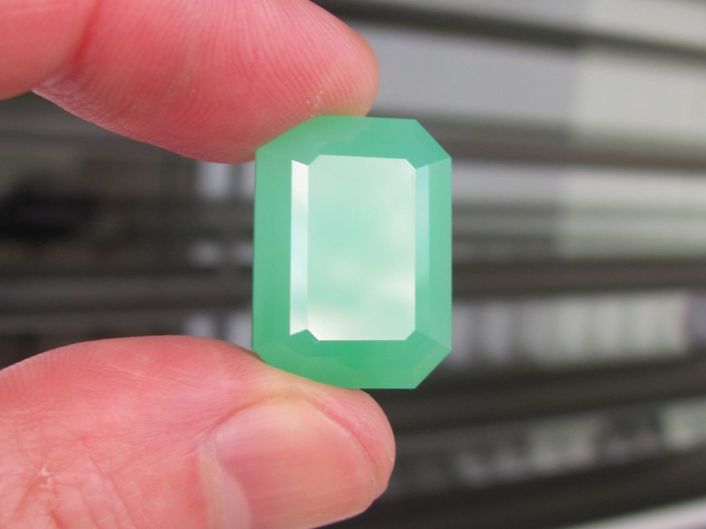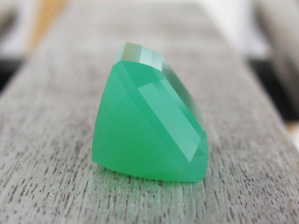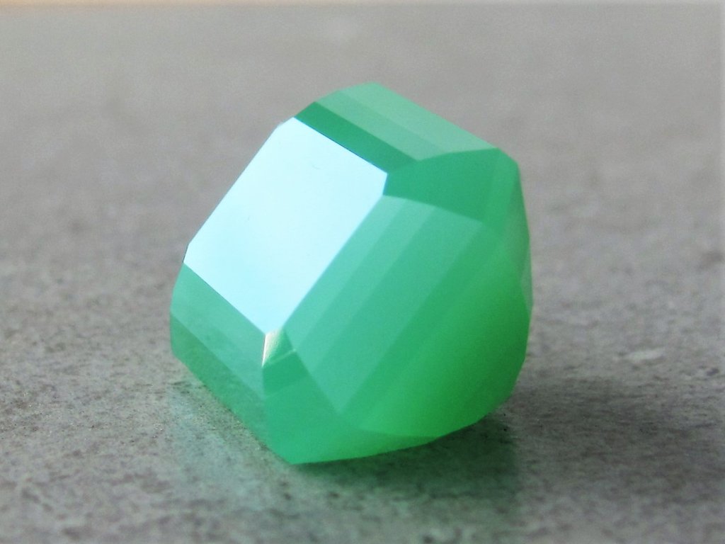 Tanzánský chryzopras se řadí mezi nejkvalitněší chryzoprasy na světě. Je známý pro své báječné zelené odstíny a svěží zářící průsvitnost. Tato výjimečná surovina se barvou přibližuje k vysoce kvalitním jadeitům. Drahokam se zpracoval do smaragdového výbrusu, zhodnotil se, získal tak charakteristickou podobu opravdového klenotu. Chryzopras má skvělé vlastnosti, krásnou barvu a dobrou tvrdost. Významný kámen k využití ve šperkařství, pro neobyčejný šperk, náhrdelník či prsten. Bezpochyby také drahokam s pozitivním účinkem na psychiku. Zelená barva přírody uklidňuje oči, zklidňuje mysl, navozuje klid a pohodu :).