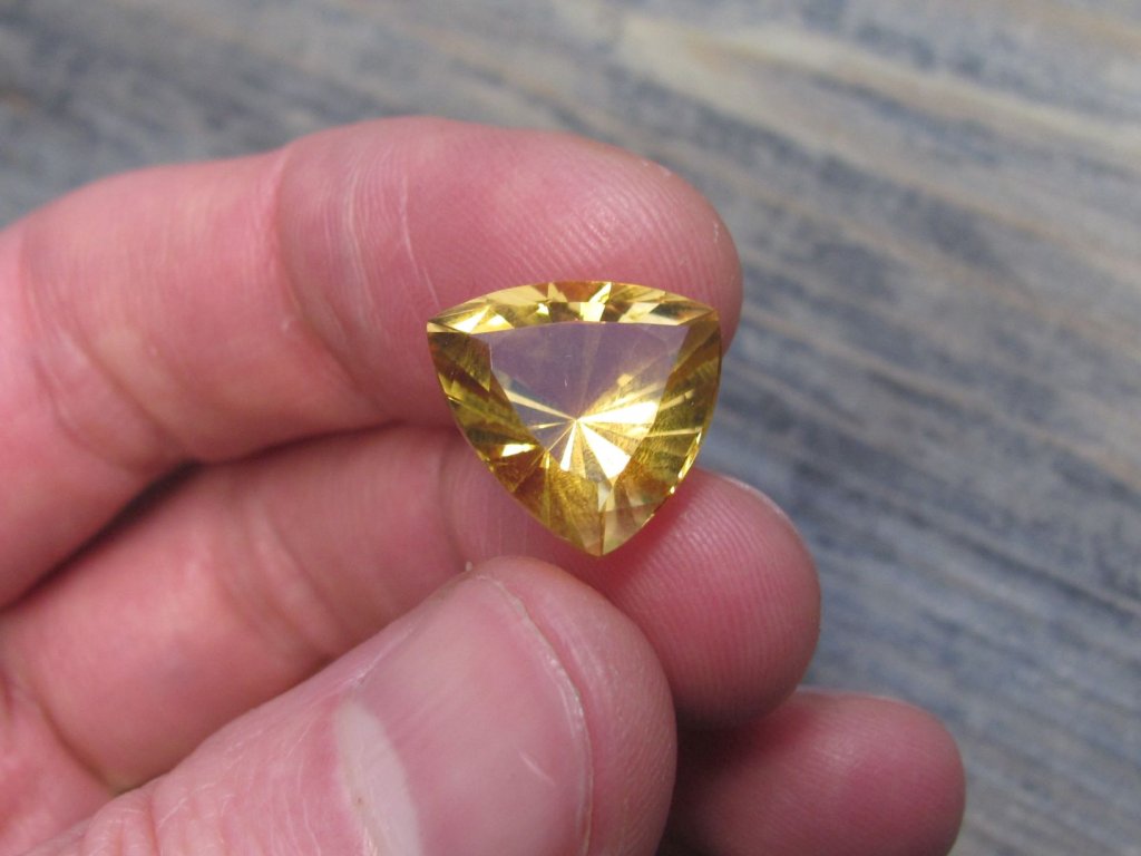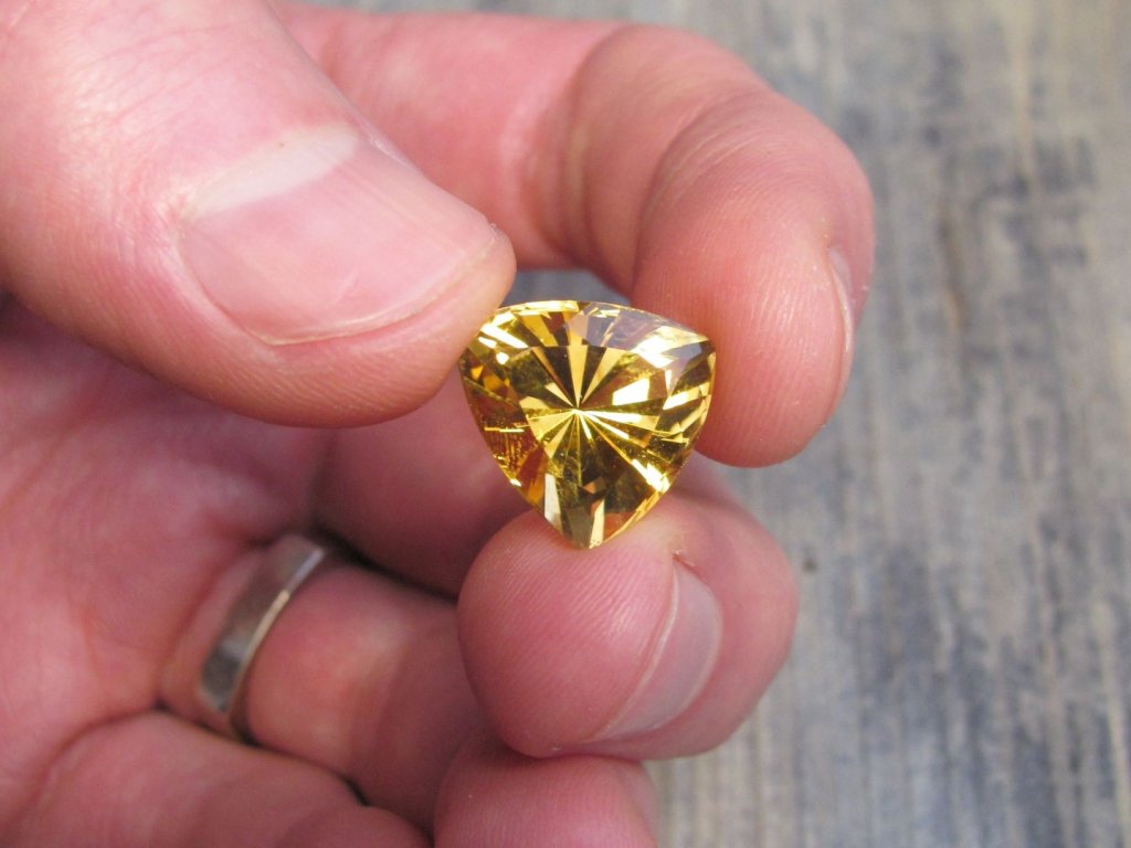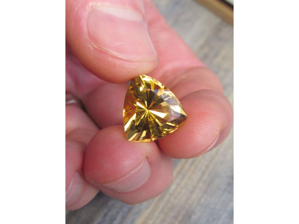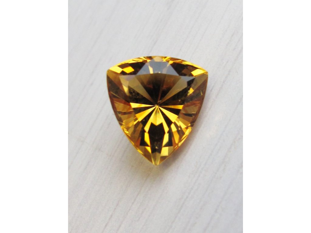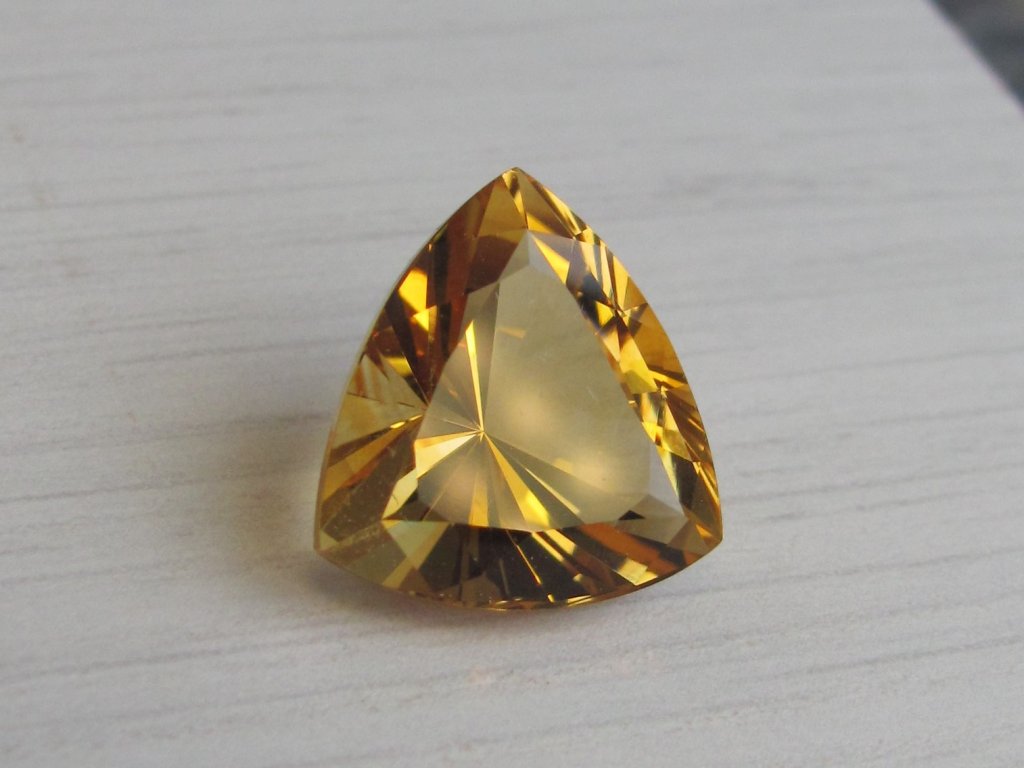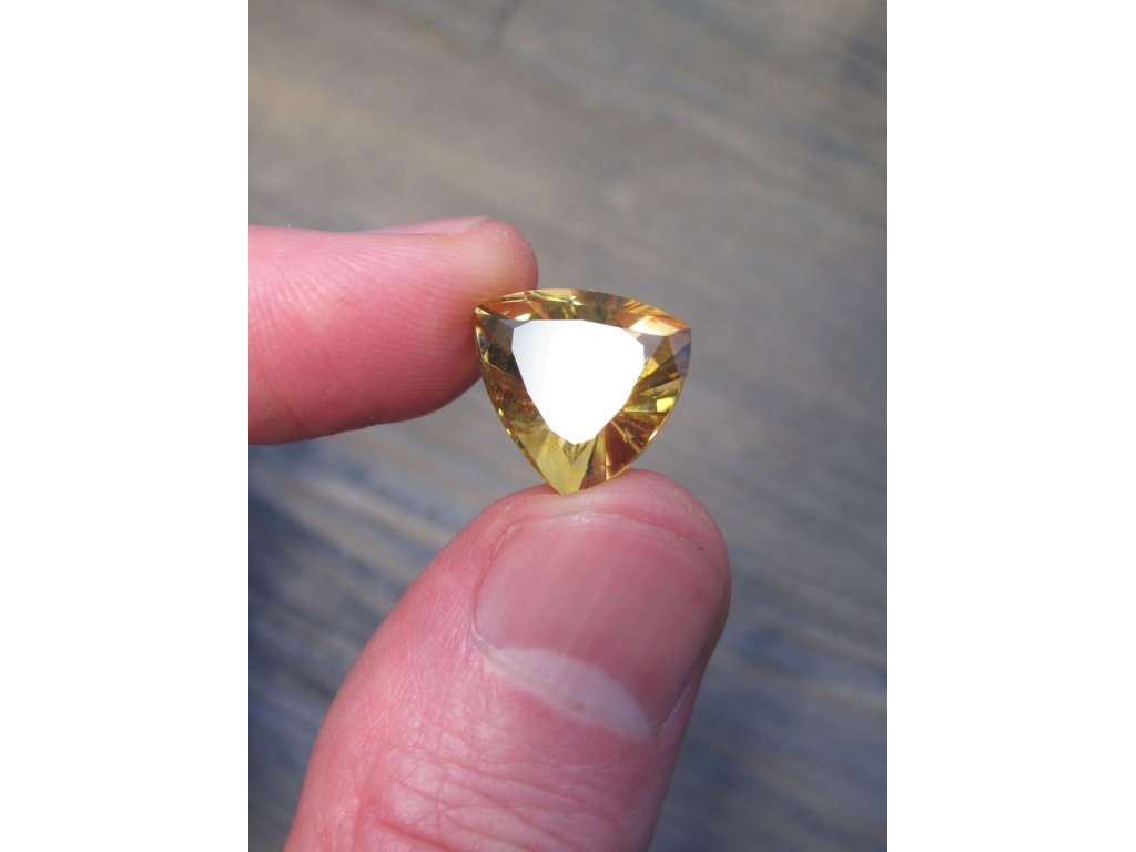 Broušený citrín z naší kamenářské dílny byl původně surový uštíplý krystal. Drahokam byl čistý, měl krásnou sytě zlatavou barvu, měl potenciál pro budoucí klenot. Citrín se tedy zpracoval do podoby současného výbrusu "trilion" a získal tak klenotnickou kvalitu. Přírodní kámen syté medové žluto-zlatavé barvy s krásnou brilancí je možné zasadit jako solitér do prstenu, náhrdelníku nebo přívěsku. Šperky s citrínem jsou povzbuzující, radostné a harmonické. Pravý citrín můžeme zařadit mezi významné drahokamy, je vzácný a ceněný. Přečtěte si článek o citrínech s ukázkou naší zakázkové tvorby.