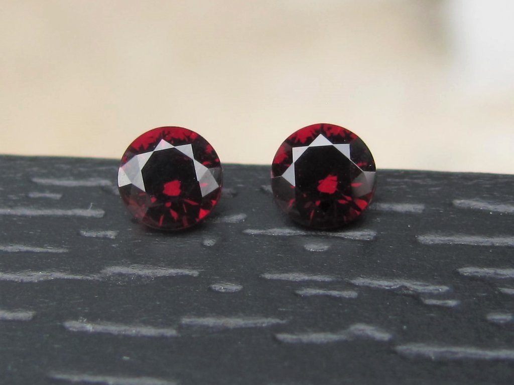 Český granát, briliantový brus 5mm, šperkový pár pro náušnice