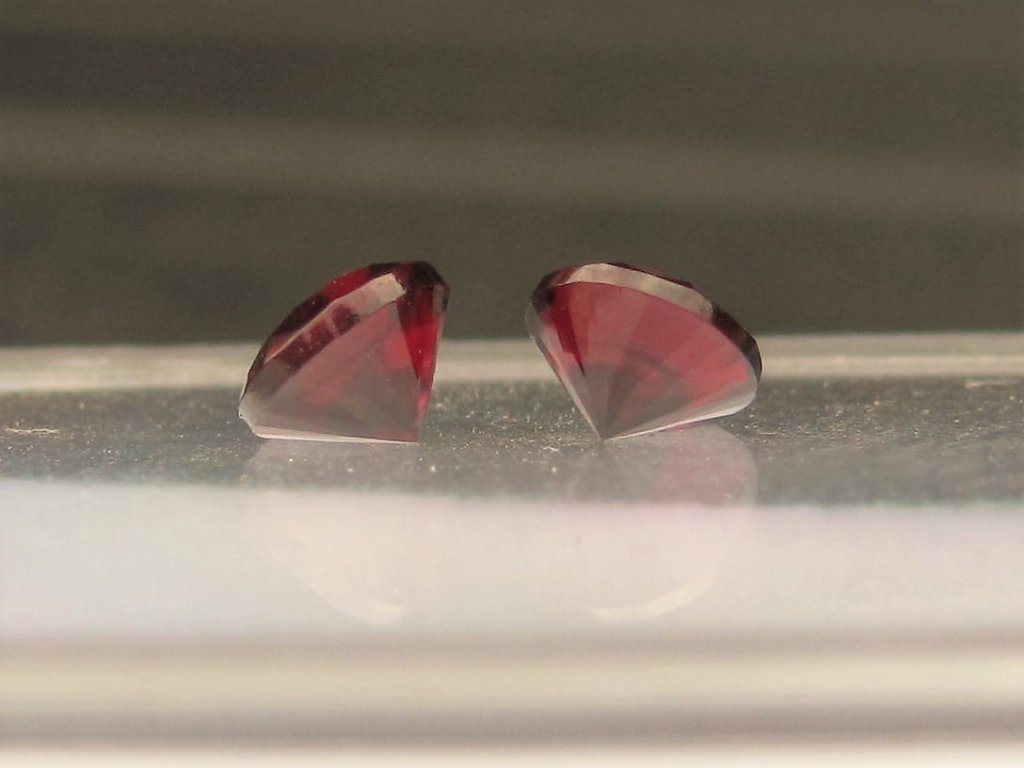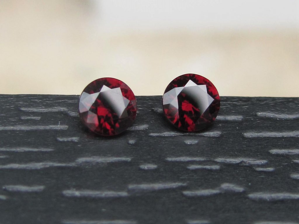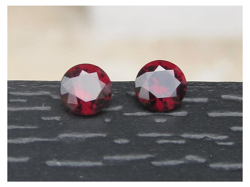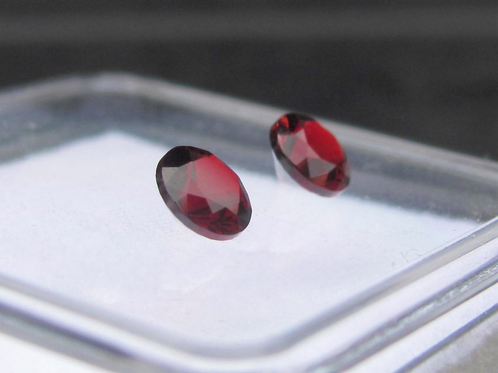 ČISTOTA: SI nepatrné inkluze, u jednoho kamene je drobná nedokonalost v podobě vnitřní trhlinky. Vzhledem k sytosti barvy granátu, nijak neruší celkový dojem. Zohledněno v ceně.