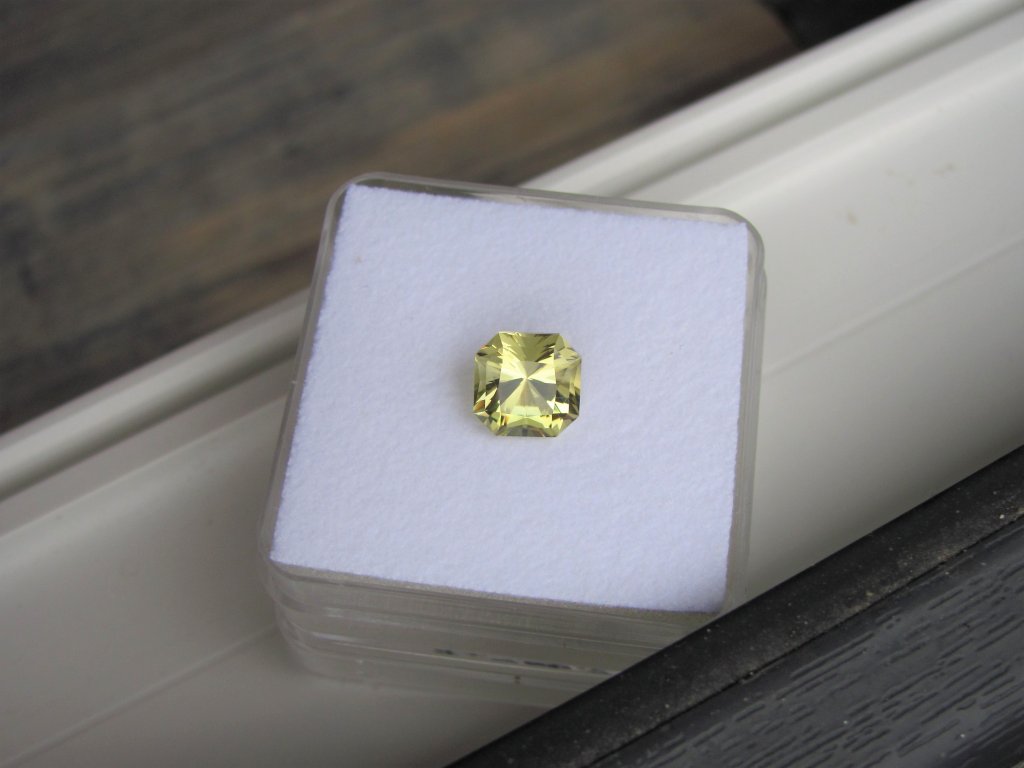Zlatý beryl - heliodor, žluto-zelinkavý drahokam s krásnou brilancí. Broušený kámen z naší dílny je zpracovaný do tvaru oktagonu. Heliodor lze využít ve šperku, jako solitér do prstenu nebo přívěsku, případně jako sběratelskou záležitost.