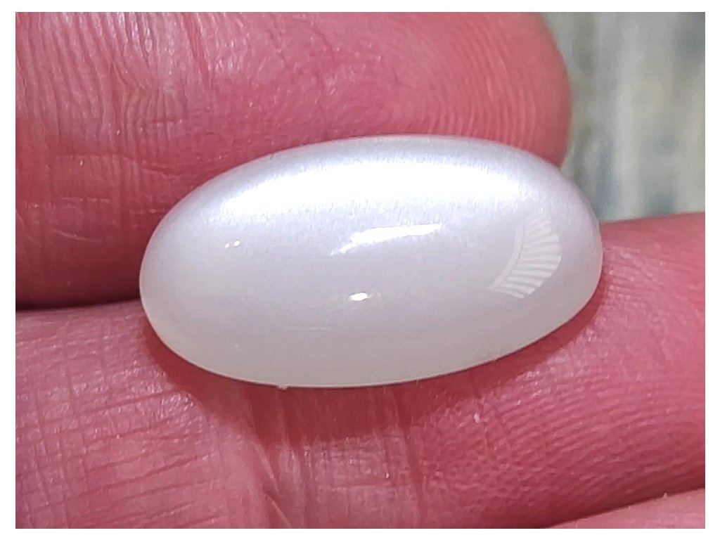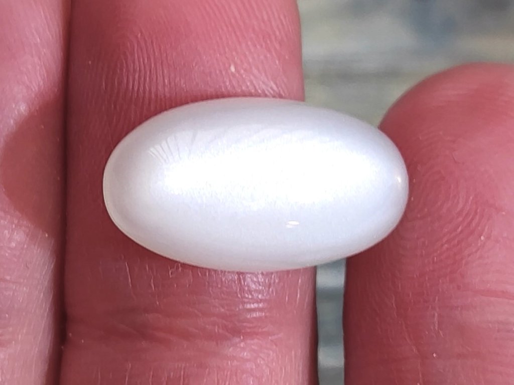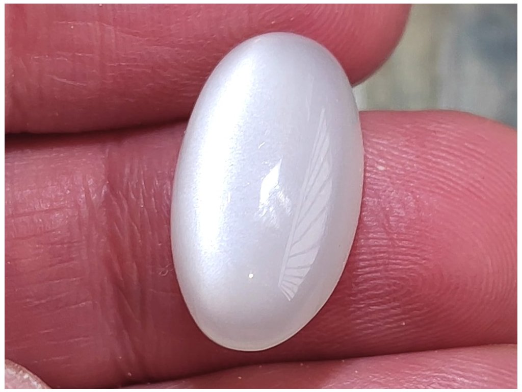Měsíční kámen se sněhobílou adularizací – oválný šperkový kabošon
