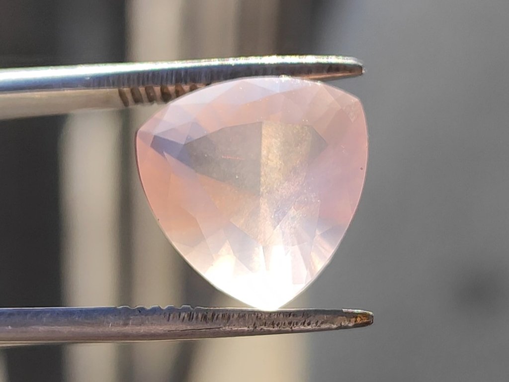 - vzácný transparentní růžový křemen. Zřídka je jasně průhledný, většinou rozpraskaný, fasetové brusy jsou vyhledávanou raritou.