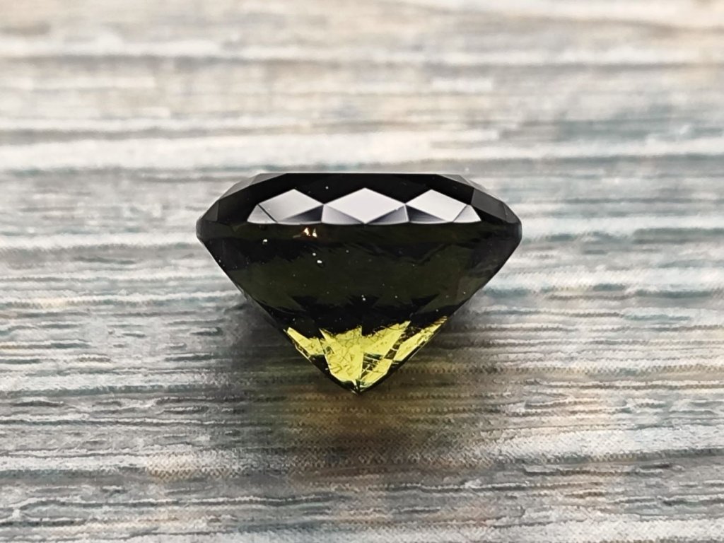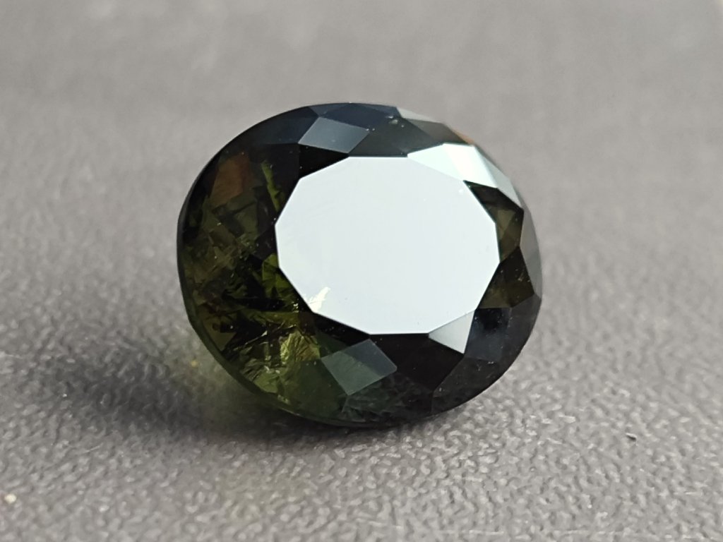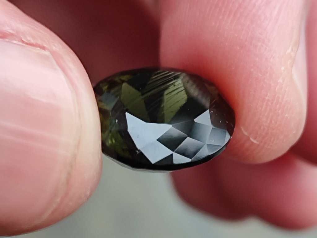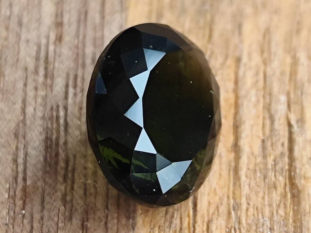 Vltavín - broušený drahokam hluboké zelené barvy