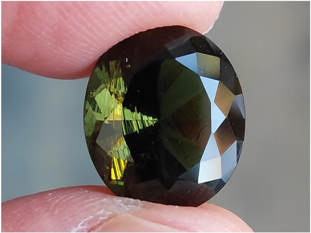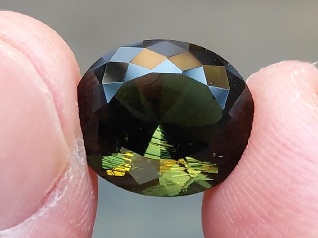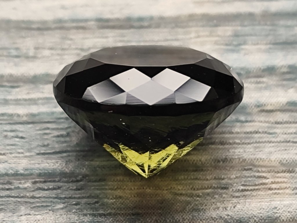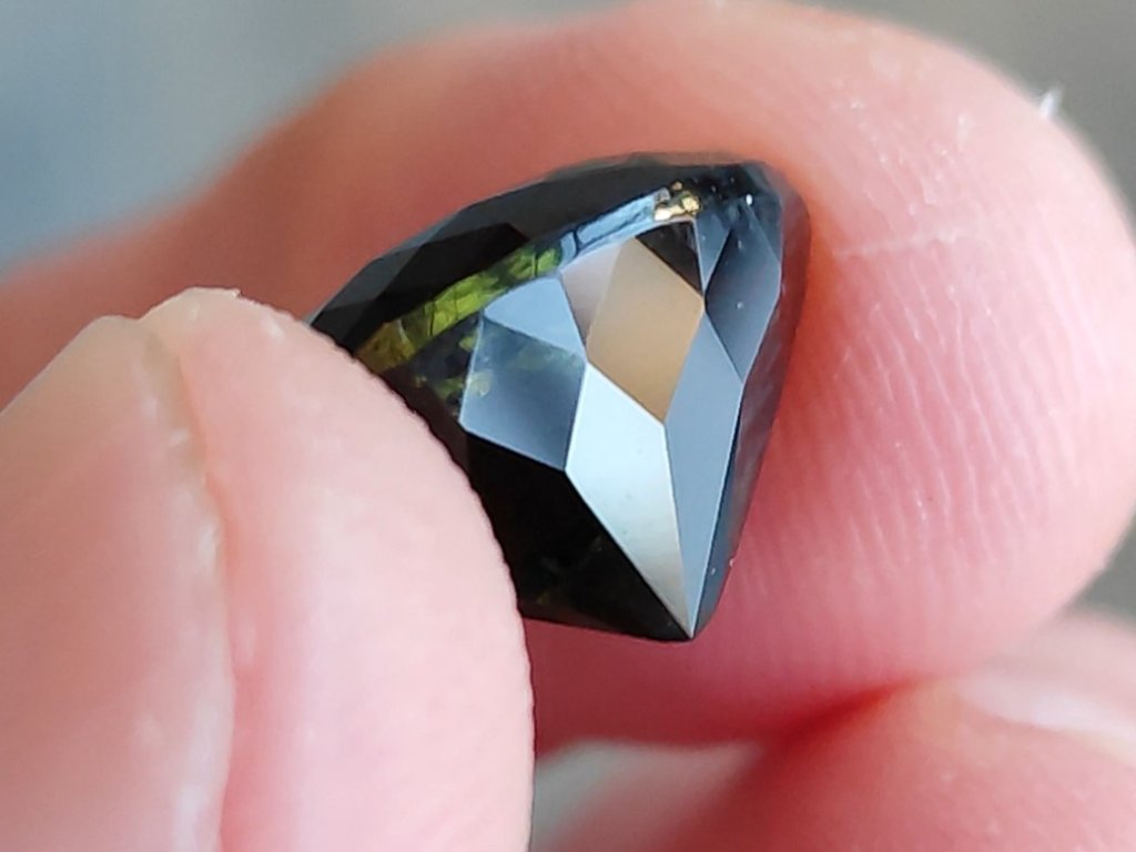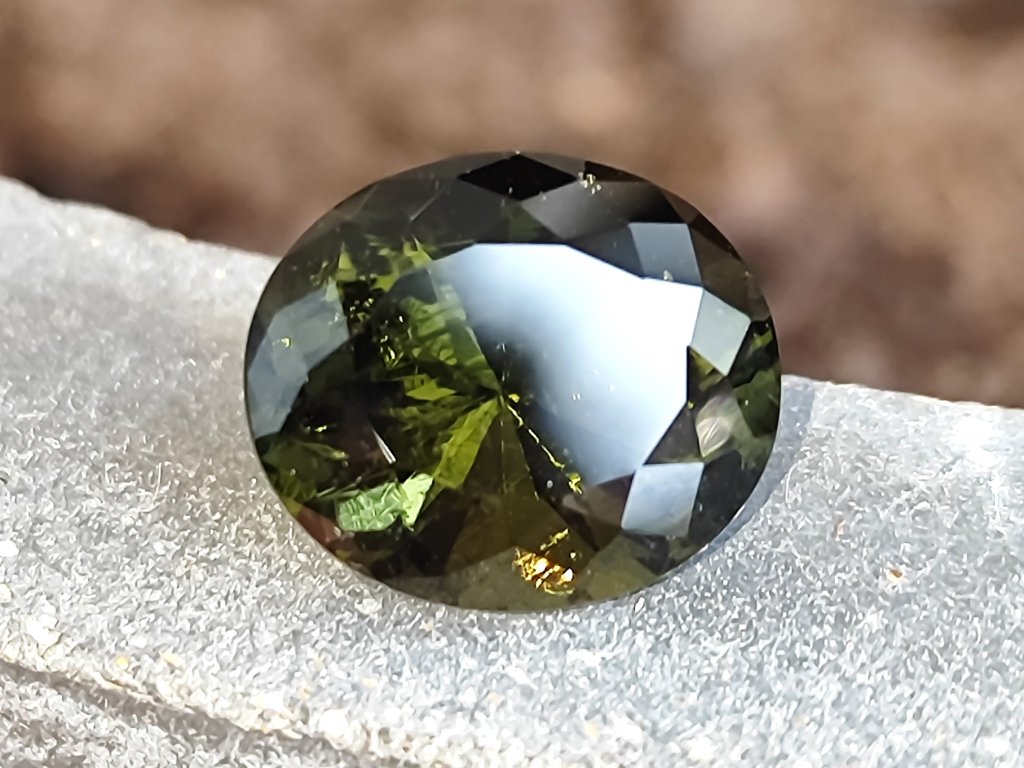 Vltavín - broušený drahokam hluboké zelené barvy