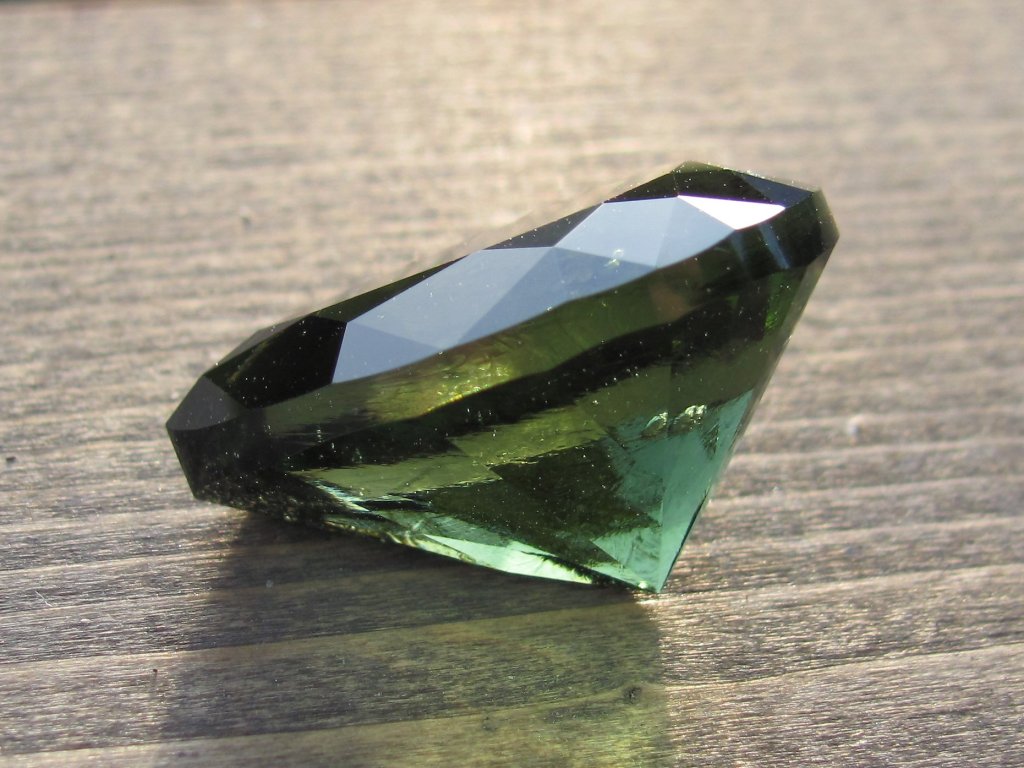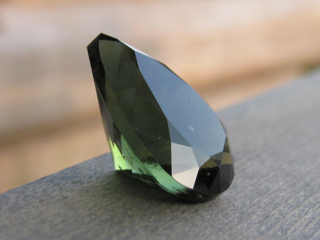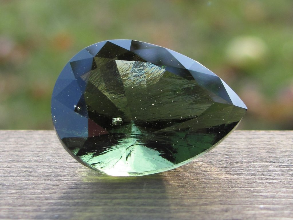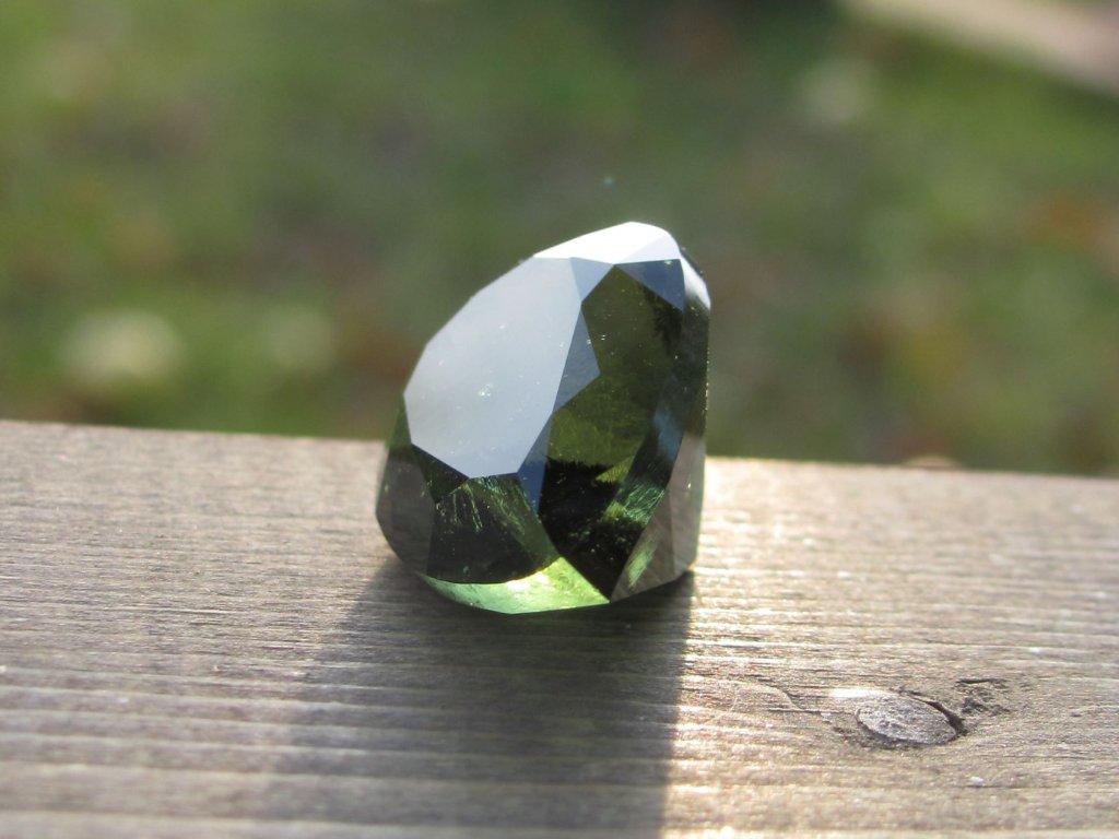 Vltavín-moldavit, krásná zelená barva, briliantový brus ve tvaru kapky 15,84ct